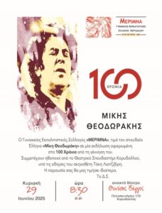 ΕΚΔΗΛΩΣΗ – ΑΦΙΕΡΩΜΑ ΣΤΟΝ »ΜΙΚΗ ΘΕΟΔΩΡΑΚΗ» 29/6/2025